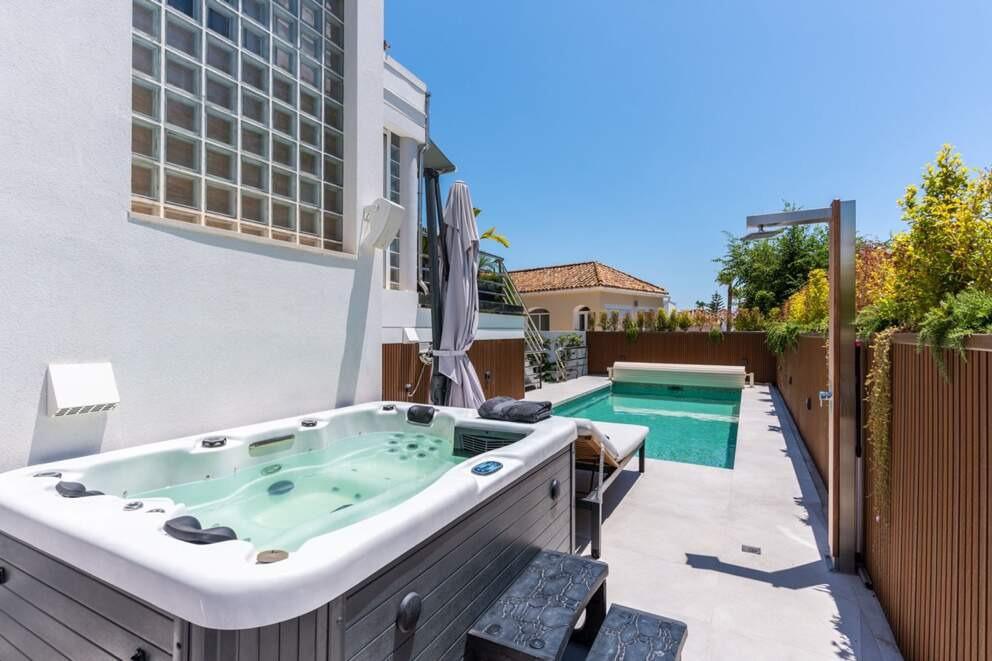 Just steps from Marbella’s golden beaches, Villa Tina is a sleek, contemporary retreat in the heart of Guadalmina. Designed for relaxation and entertainment, this elegant family villa features a private cinema, a luxurious hammam, and a thoughtfully curated entertainment zone. Spend sun-soaked days by the pool before indulging in alfresco dining, where the flavors of Andalusian cuisine come to life on the barbecue. As evening falls, unwind in the villa’s serene interiors or take a leisurely stroll along the nearby coastline, embracing the Mediterranean’s timeless charm.