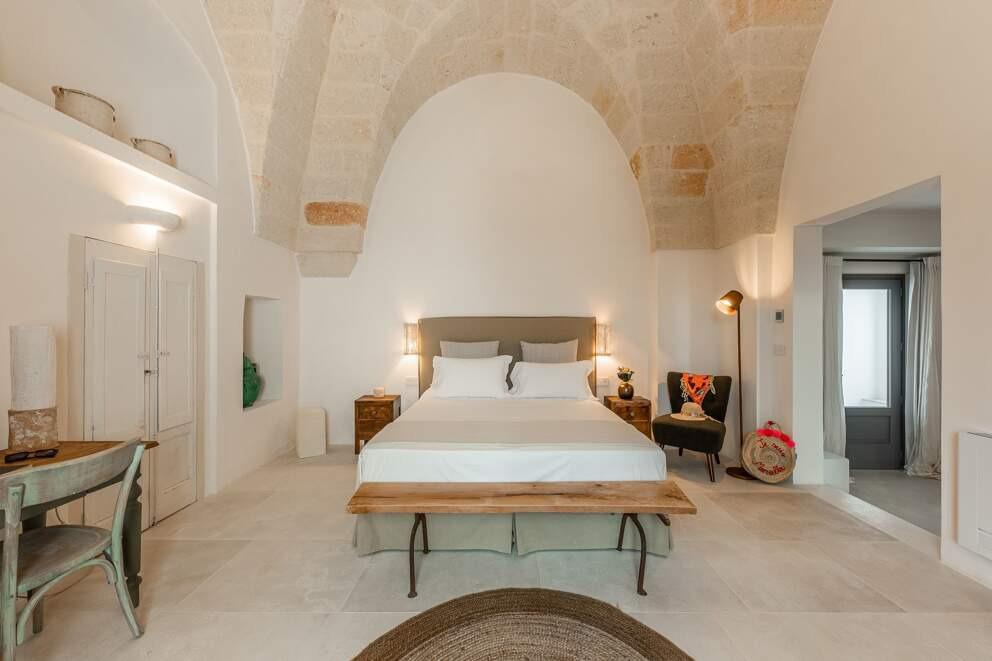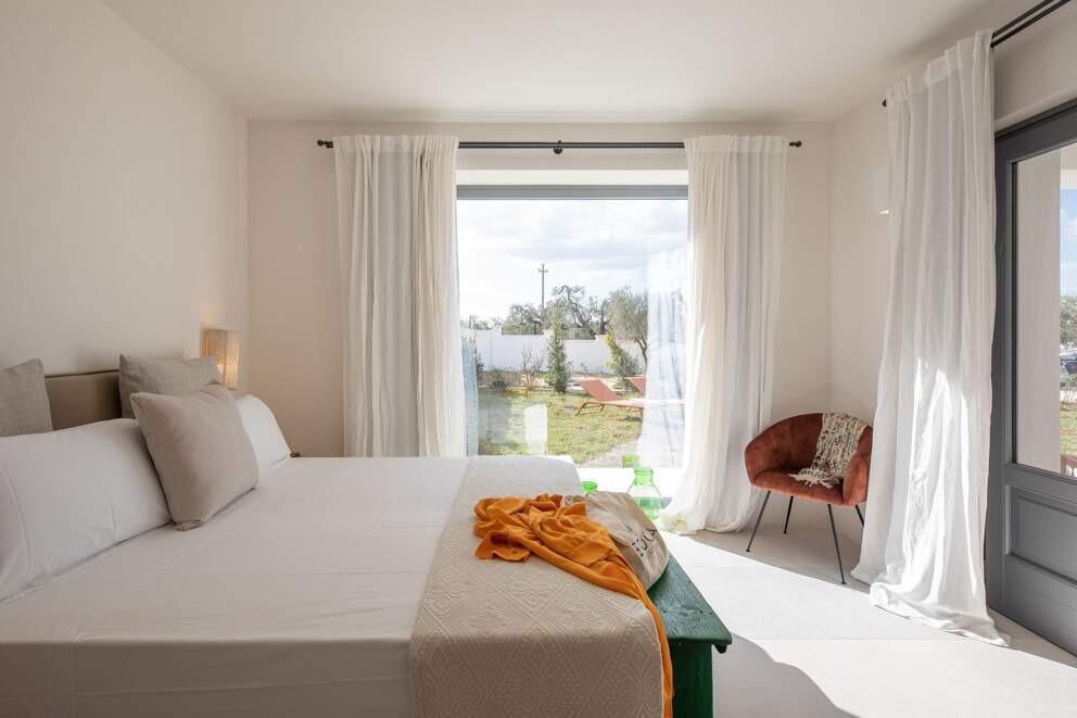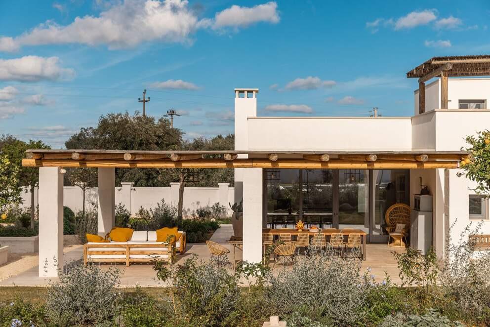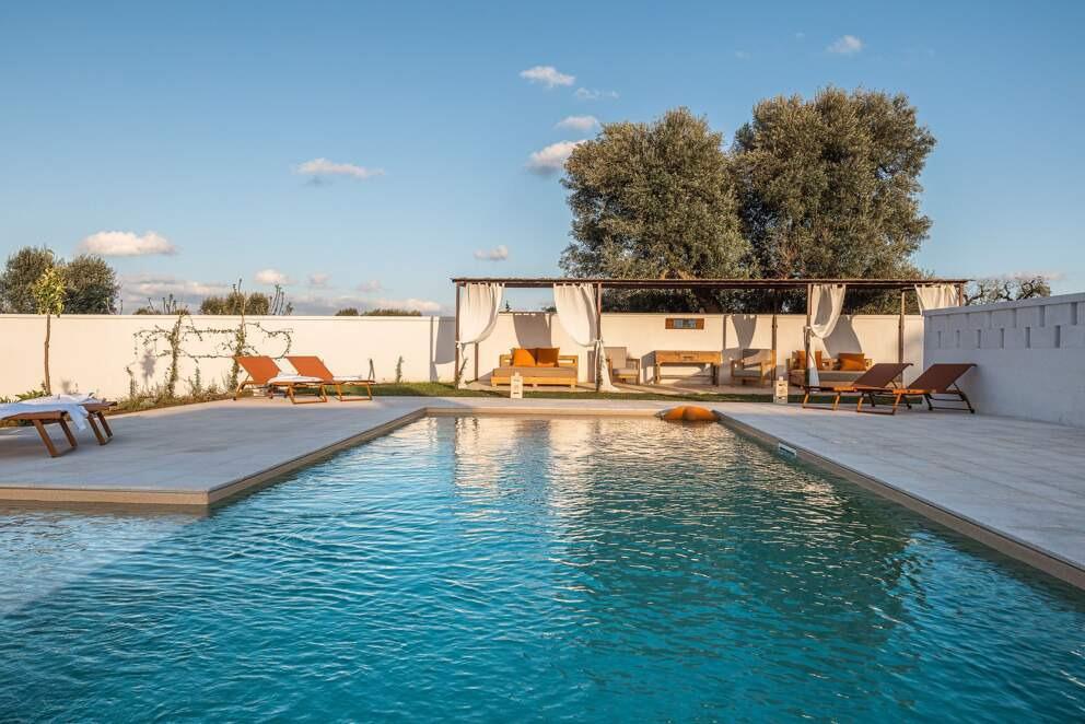 Surrounded by the stunning natural beauty of Salento, Dimora Occhio is a celebration of the Italian Dolce Vita. Its white-washed walls create a striking contrast against the azure sky and vibrant greenery. Inside, the villa masterfully blends traditional charm with modern elegance, offering a serene escape. Mornings begin with sunlight streaming through the windows and a cup of Italian coffee enjoyed by the outdoor swimming pool. Guests can unwind to the soothing sounds of rustling leaves and birdsong while savoring a good book.