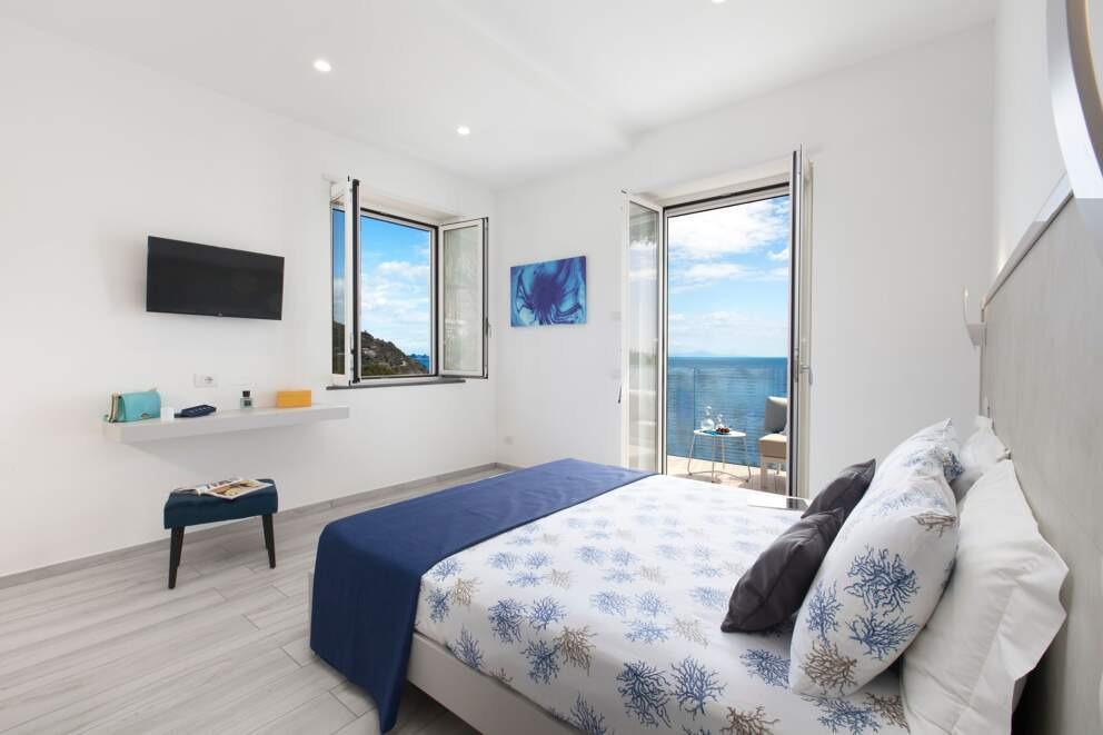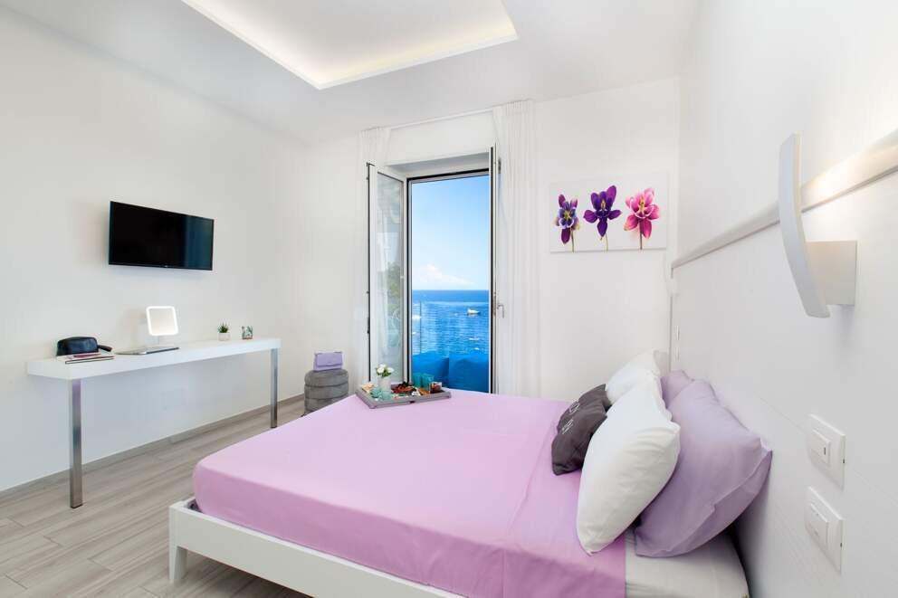 Perched above the sparkling coast of Sorrento, Villa del Cantone offers uninterrupted views of the sea and private access to the beach below. Its Mediterranean garden, outdoor pool, and jacuzzi create a serene oasis, while the interiors provide refined comfort across six elegant bedrooms. Enjoy sun-drenched afternoons on the terrace or a quiet stroll down the villa’s private path to the shore. As evening sets in, gather for alfresco dinners featuring the region’s famed Neapolitan cuisine—fresh seafood, handmade pasta, and local limoncello served under the stars.