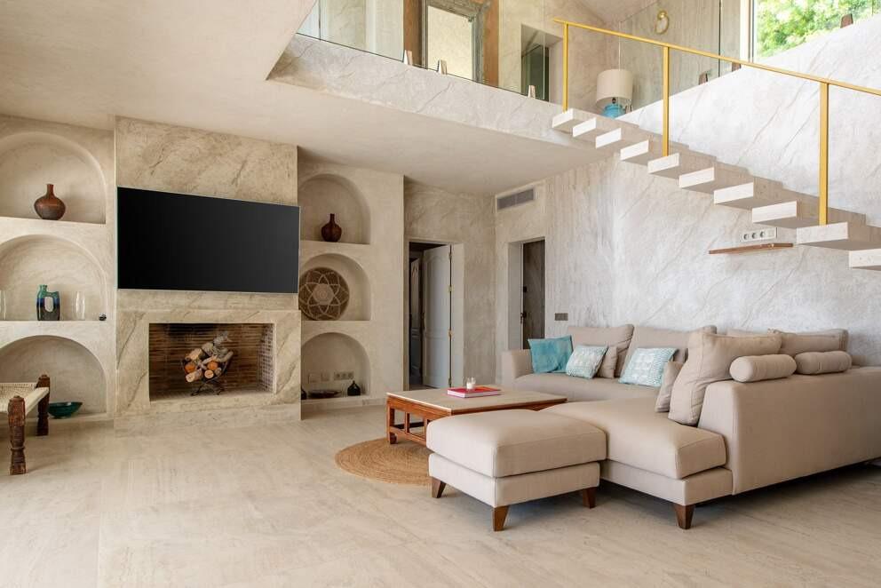 Perched on the vibrant shores of Ibiza, Villa Dreamy is a luxurious haven offering breathtaking sea and city views. Accommodating up to 10 guests across five elegantly appointed bedrooms and bathrooms, this 450 sqm retreat combines modern sophistication with exceptional amenities. Unwind by the outdoor swimming pool, indulge in the jacuzzi or hammam, or perfect your game on the private tennis court. The villa’s spacious terrace invites al fresco dining by the barbecue, while the cozy fireplace provides a warm ambiance for evenings indoors.
