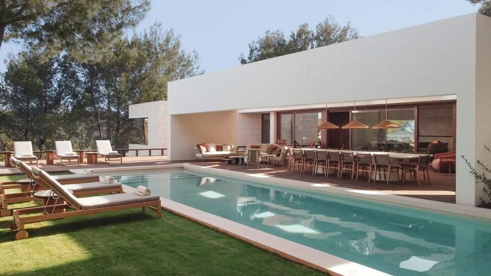 Tucked away in North Ibiza, just a short walk from the beach, Villa Auriana offers a serene retreat where minimalist architecture meets the island’s natural beauty. The villa’s sleek design seamlessly blends indoor and outdoor living, with expansive terraces, a shimmering pool, and spaces for pétanque and volleyball. Spend leisurely afternoons soaking up the sun before indulging in a Mediterranean feast—think fresh seafood, local produce, and bold island flavors. As evening falls, unwind with a cocktail under the stars, embracing the effortless luxury of Ibiza’s tranquil north coast.