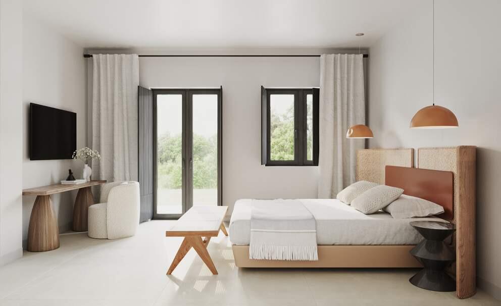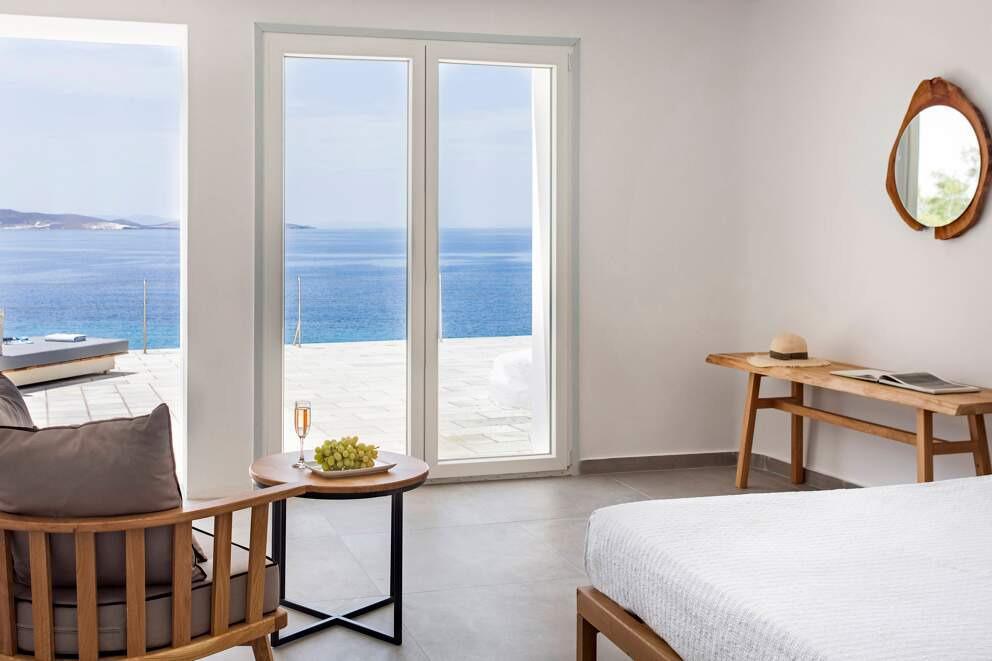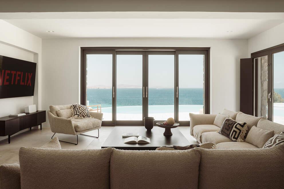 Perched on the tranquil outskirts of Mykonos, Villa Thelma is a sanctuary of refined elegance, blending modern sophistication with classic Cycladic charm. Whitewashed walls and natural stone accents frame panoramic views of the Aegean, best enjoyed from the infinity pool. Begin the day with a refreshing swim, followed by a workout in the fitness room. Savor a leisurely barbecue lunch in the shaded outdoor dining area before exploring the nearby beaches or vibrant Mykonos town. Indulge in Mediterranean flavors, where fresh seafood and local ingredients take center stage in every meal.