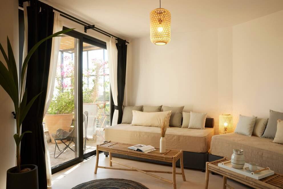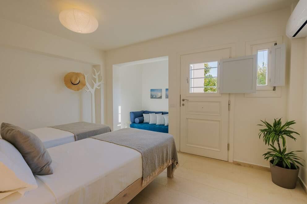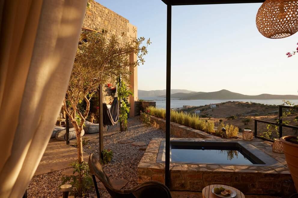 Perched on the hills of Crete, Villa Dyo is a sanctuary of serenity overlooking the endless blue of the Mediterranean. Its contemporary architecture, with natural stone walls and light wood accents, blends seamlessly into the untouched landscape. Inside, refined yet inviting interiors are warmed by luxury materials and subtle bursts of color. Start your day with a swim in the infinity pool, then unwind with a book on the sun-drenched terrace. Savor a barbecue lunch infused with local herbs, and as night falls, relax in the jacuzzi under a starlit sky, indulging in the island’s culinary delights.