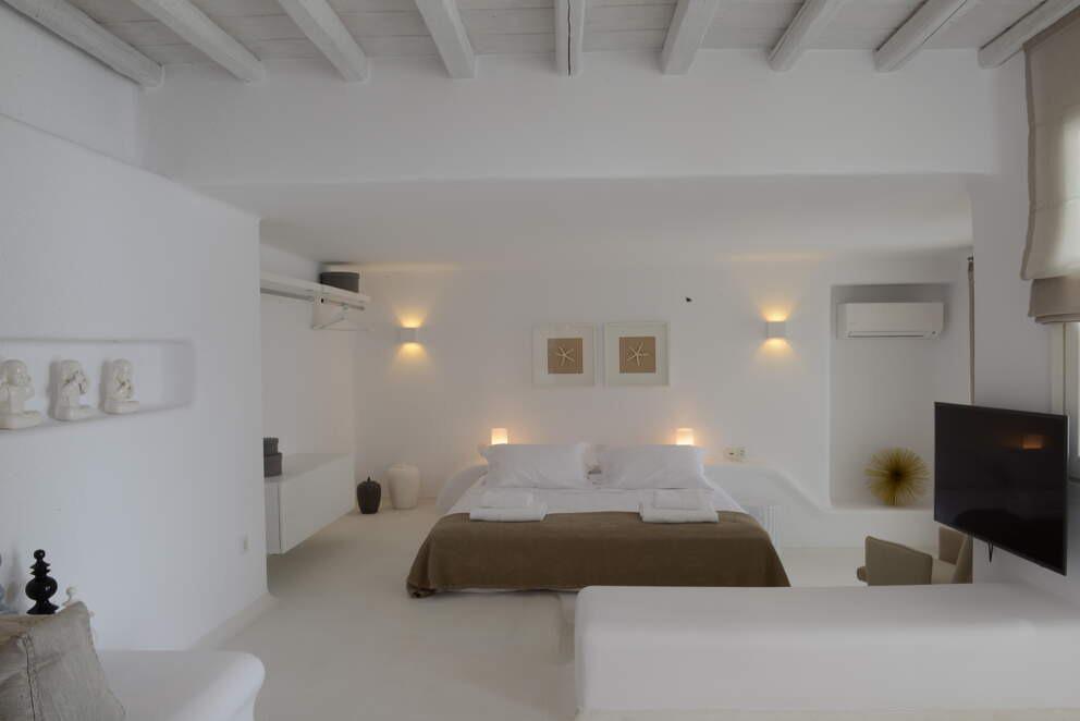 Perched high in the Cyclades, Villa Aphrodite is a serene retreat where traditional Greek architecture meets contemporary elegance. Whitewashed walls and minimalist décor create a refined yet inviting atmosphere. Begin your morning with a breathtaking sunrise over Mykonos from the panoramic terrace, then take a refreshing dip in the turquoise pool. Enjoy a leisurely afternoon under the pergola or explore the island’s charming streets. As evening falls, gather for a delightful meal of fresh Mediterranean cuisine, savoring the flavors of Greece in this idyllic setting.