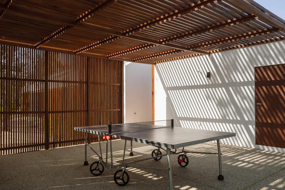 Casa Ananda offers a serene escape nestled in the tranquil countryside of Comporta, just moments from the Atlantic's sandy shores. This hidden gem invites guests to unwind in its peaceful surroundings, with a blend of rustic charm and modern comfort. Begin your day with coffee on the shaded terrace, followed by a leisurely family lunch in the bohemian-style kitchen. The living room’s floor-to-ceiling windows open to let in the ocean breeze.